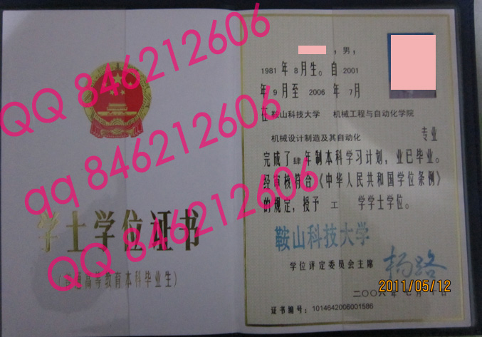 鞍山科技大学学位证样本、报到证样本、档案等。