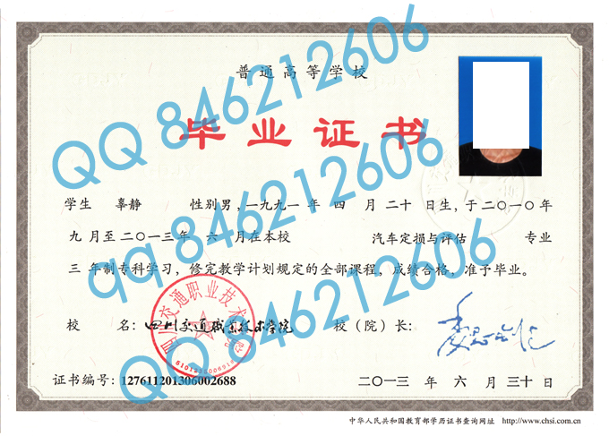 四川交通职业技术学院毕业证样本图片