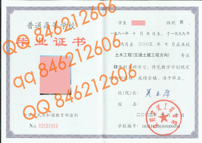 2003年沈阳建筑工程学院毕业证样本(模板)、学位证样本、报到证样本、档案等。